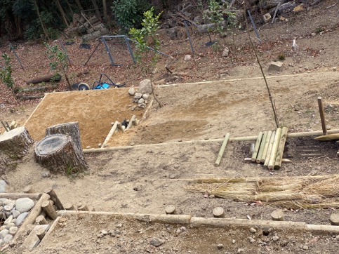 暖かいとはいえ、今朝ほどは氷が張るやはり寒中、一人の若者を支援から雇い、資材を購入できる分づつ揃えております。