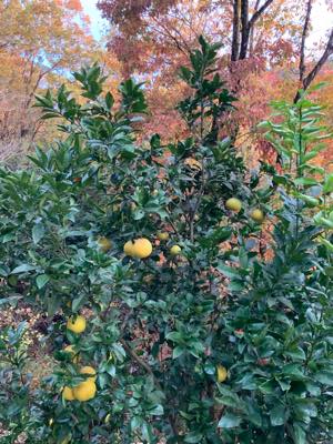 少し離れた瑠璃光院北側の八朔の黄色と緑のコラボ