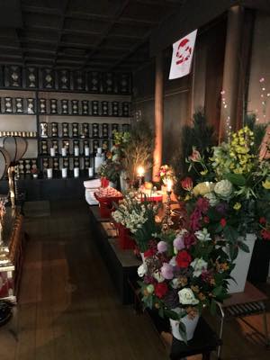 今年もマミ御一家が御本尊様と瑠璃光院へ素敵なお花を活けてくださいました、一年のご挨拶もできずでした。
