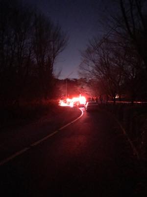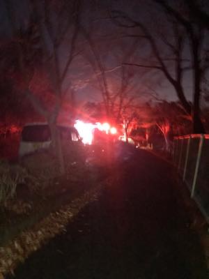 午後7時頃、サイレンの音とに続く消防車・救急車、パトカーなど数え切れない車両が通過!!