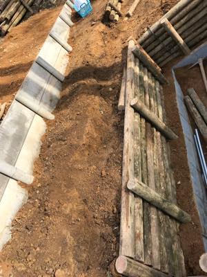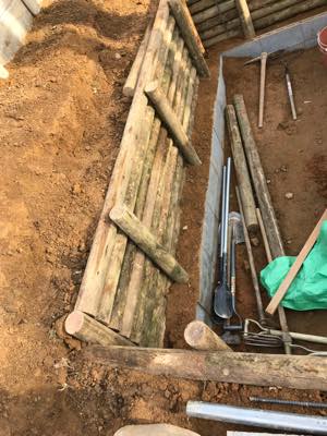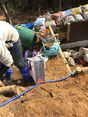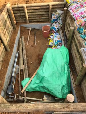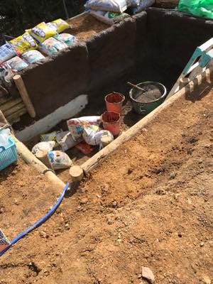 池底も練り合わせを5センチ敷きつめ、さらに防水効率を高めるための土を60キロ撒いてある