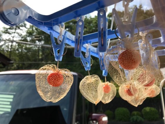 それでもお盆の鬼灯の葉脈を浮かせる、毎日2分だけでも半月も経てばやっと干せるところまできた、あとどのくらい掛かるのか未知数です♪