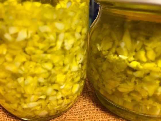 ニンニクが好きでも会社へ行くと匂いがねという声も聞く、あれこれ考えみじん切りにしてお日様の力を拝借、半日ほどで大凡香りが少なくなり、酸化しないようオリーブオイル漬けにしました。
