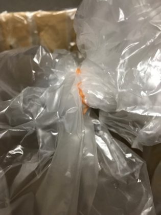 中袋の口を輪ゴムで止め、外袋をたたみ蓋にします。