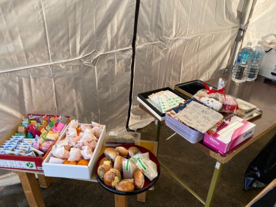 本日参加できないけれどと届けてくださったパンやお菓子、手づくりグッズ、果物をいただき、力強く頑張ってくださいました、ありがとうございます。