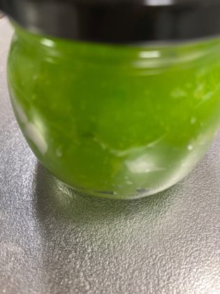 イラっとしたせいでしょう、パソコンデーターの一部が損壊、仕切り直しにとても綺麗な緑のハンドクリームを作りました(境内地のハーブです)