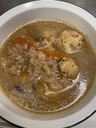 小豆飯と鶏団子を頂戴しました、身体が温まり、また元気が出てきますと見合わせる笑顔の花。