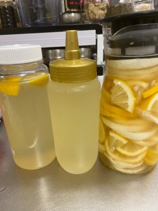 右から蜂蜜レモン酢・大根蜂蜜・蜂蜜大根レモン、昔食道癌をしたときレーザーで焼き切ったものの、発声方法を変え話をさせていただいております。