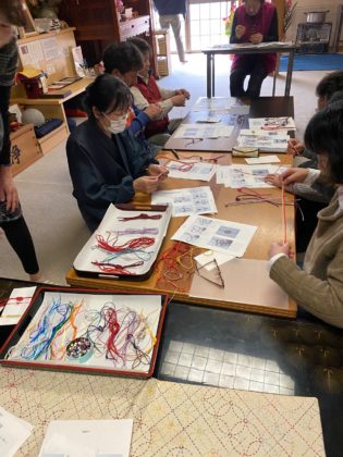 繊細で色合いも素敵な組み合わせ、お隣の奥様はゴージャスな梅結び、そして皆さんお上手に仕立て上り、和やかなひと時をいただき有難うございました。