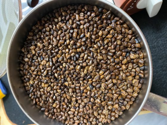 ハブ茶をコツコツ煎る香りが広がる