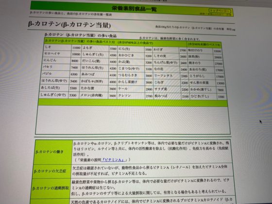 βカロテンが多く含まれているものがよいと書いてありました、ネットで調べてみてください。