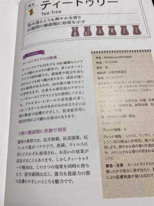 ティーツリーについて「アロマテラピー精油辞典」成美堂出版を参考にしました。