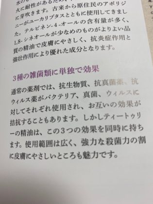 ウィルスという文章が気に入り、ディフューザーへ水とティーツリー数滴入れると爽やかな感じが広がります。
