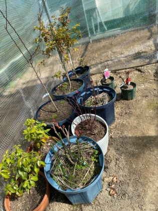 瑠璃光院隣の畑、寒さから退避していた植木鉢。