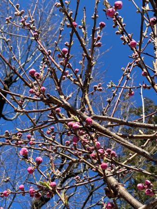 瑠璃光院の西畑脇には桃の花がスタンバイ中