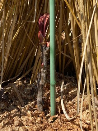 枯れたと誰しもが諦めていた、話を聞いていたのだろうか、息を吹き返すよう踏ん張り芽が出てきた)