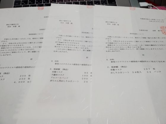 地元各務原市へ届けましたマスク、通算1千枚を納めました。
