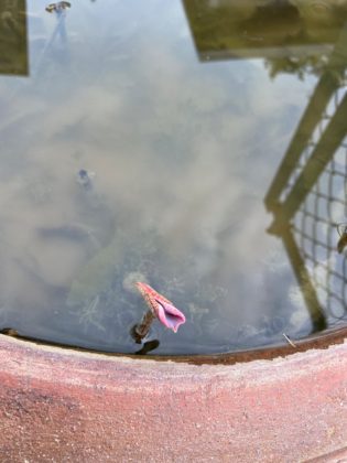 風の道をつくる草刈り、ボウボウの枇杷の木剪定、ローズマリーはお地蔵様の周囲に移動、芝生から顔出すスギナを刈り取り新たな鉢植えが2つと入れ替え♪