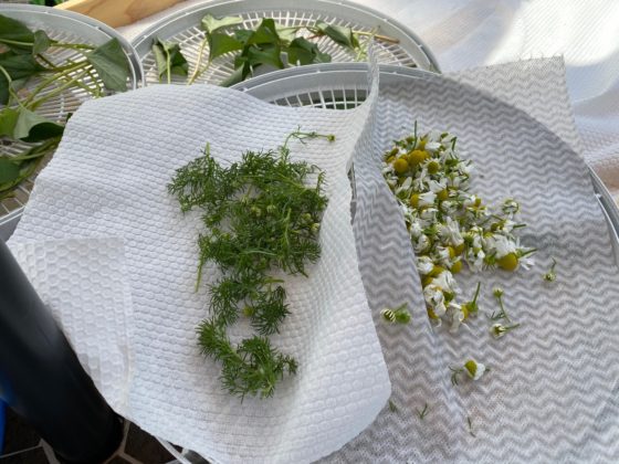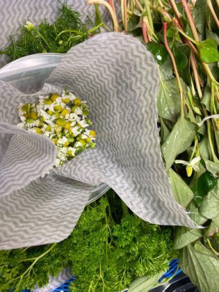 消毒が始まる前にカモミール、パセリなども採取修治中