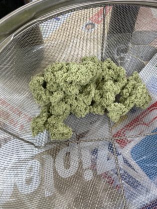 手間暇かかる分、高級ですね、もう少し緑が取れるまで擂粉木でゴリゴリ…