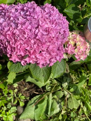 昨夜の雨に打たれ、倒れかかっている紫陽花の支え、ひこばえの枝切り、根が痛まないよう草寄せを朝のうちに完全防備して頑張ってきました。