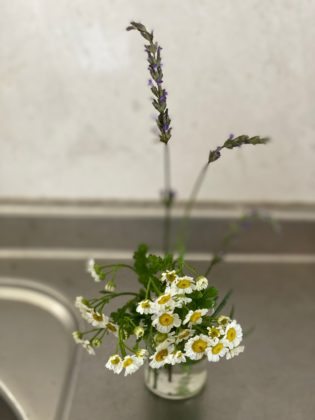 ナツシロギクとラベンダー、ローズマリー
