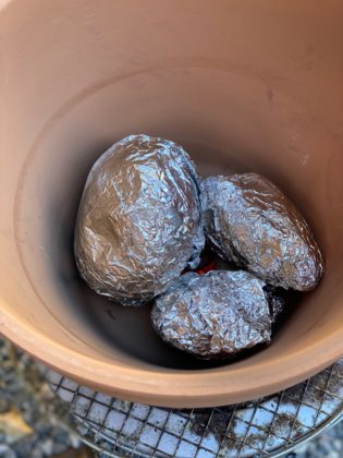 日々のお便り 秋の到来物 2020.10.15 素焼きの植木鉢と、素焼きの皿を蓋にして、サツマイモと坊ちゃんカボチャの丸焼き中。 ちょっとおやつならば十分ね 濡らしたキッチンペーパーで包み、アルミホイルで巻き 鉢植えの底穴を塞がないよう並べます。 こんがりホッカホカ出来上がり!! カボチャのヘタをくり抜き、そっとタネを取りバターを一切れ入れ、ヘタの蓋をします。 お不動様へ供え、熱々のうちに寺内で頂戴しました、素材の甘さがしっかり引き出され美味しゅうございました。 毎日が楽しい♪ パワーの方向 金曜日 関連記事 空よ 追い付かぬ 二回目接種 コメント ( 5 ) トラックバックは利用できません。 ヤマグチヨウジ 2020年 10月 15日 返信 引用 遅くなりました。マントラの問 三角形の数 44でしょうか wakei 2020年 10月 15日 返信 引用 ヤマグチヨウジさん 残念!再チャレンジしてみてくださいね。 座敷オヤジ 2020年 10月 15日 返信 引用 こんにちは。下のコンロは何ですか?初めて見ました。 三角形の頂点、確かに⚪︎⚪︎個出来ますね。ただ中心がゴチャゴチャして描きづらいので少しずらして描きました(^^; wakei 2020年 10月 15日 返信 引用 座敷オヤジさん こんにちは キャンプ用コンロです、その上に素焼き植木鉢と同じく素焼き受け皿(*^^*) もう仕上げたの!!早いですね。少し足並みを揃えたいので少々お待ちくださいませ。 松惠 2020年 10月 16日 返信 引用 しっとり、バターがしみた絶品かぼちゃとホクホクさつまいも、お下がりをありがたく頂きました。折々にサプライズのお裾分ありがとうございます。肥ゆる秋です❗️ 返信をキャンセルする。 名前 ( 必須 ) E-MAIL ( 必須 ) - 公開されません - URL Δemail confirm* post date* 日本語が含まれない投稿は無視されますのでご注意ください。(スパム対策)