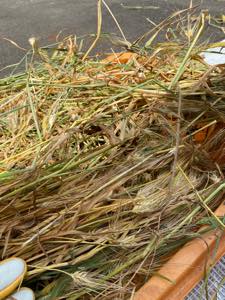第二段階は、チクチクしたヒゲとゴミを取り除きます、三段階目は一升瓶に入れ皮剥き、全部手作業とお天道様のご機嫌を伺いながら進めております。