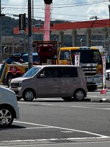 真後ろから地響きとバックミラーに横転し近づくトラック、大きな国道の派出所前ですからお巡りさんが素早い対応と道路封鎖、見事な連携です。
