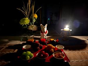 月見といえば、テラたちも楽しみにしていますが昨夜の大雨で湿気が多く、室内にてささやかなお月見です♪