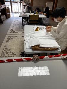 奥の三人は大袈裟の糸チェック、外ではプロジェクトの塗装を早朝より手際よくされておられました。