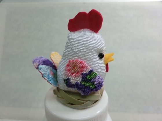 来年の干支は酉年・ミニカレンダーの絵に合わせ、本堂のどこかに置いてみようと手縫いの「鶏」を作ってみました。