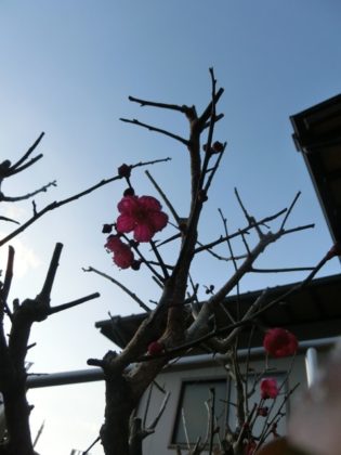 本堂の裏の梅が咲き始めたけれど