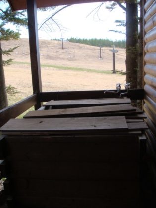 十分ほどして桶をのぞけば、数センチしかたまっていないのよ、誰も使用していないらしく木が乾燥し隙間だらけ、水漏れが酷い…あー残念!
