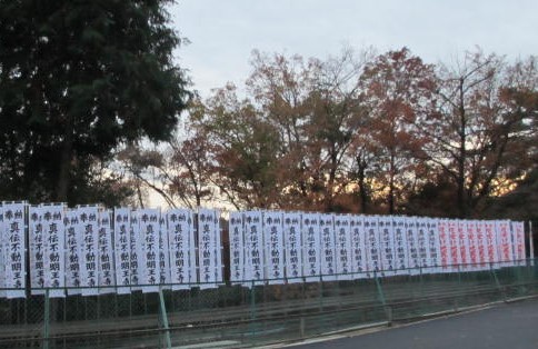 本日、真伝不動明王寺の境内地に第一陣の「のぼり」が立てられました、新年を迎えそれぞれの「願い」を叶えたまえと御本尊様へ名乗りをあげられました。