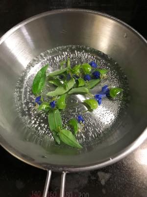 境内地を見回す足元に「露草」が咲いていました、少し摘みお昼の一品「お浸し」です。