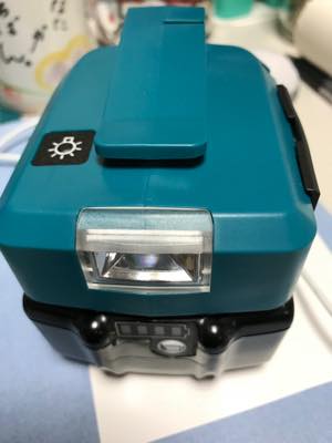 お手元にマキタのインパクト・ドライバー14〜18タイプバッテリーがあれば、別売りの青い部分のものを取り付ければUSB二個口、ライト付きが便利かと。