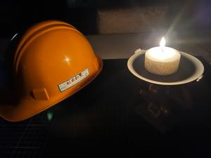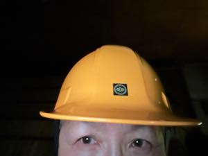 今夜から夜間巡回の必需品ヘルメットを被り、心の拠り処を守る気合十分