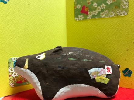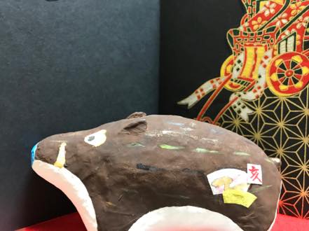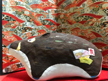 張り子は軽いことから身軽に災難から逃げられるとも聞きます、可愛らしさや厳しい猪もよいかもしれませんが当寺の役員がご本尊様のご加護をいただき、意味合いを承知しその願いを叶えようと慣れない手つきですが、いずれも二つと無い「ザ・イノちゃん」です。