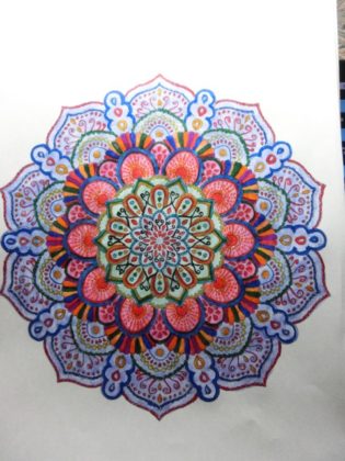 何の決め事もせず、気になる色筆を手に取り、埋めていきたいところから塗っていく、あしてやろうこうしてやろうなんてことは一切考えない。