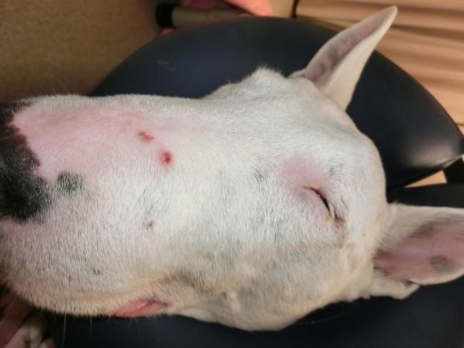 お鼻筋の赤い点は…名誉のキズでしょうか?