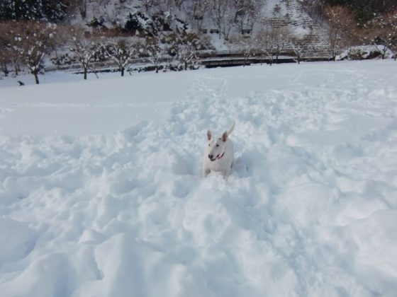 雪の中を走り回ってるテラちゃん、追いかけっこしたらまた楽しいね~ 猫ちゃんは炬燵の中かな?