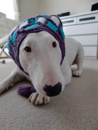 興子さん 寒い日でしたね。風も強い一日、暖かくして無理されませんように。被り物や帽子を嫌がらなかったテラ、これはテラへの頂き物なんです。