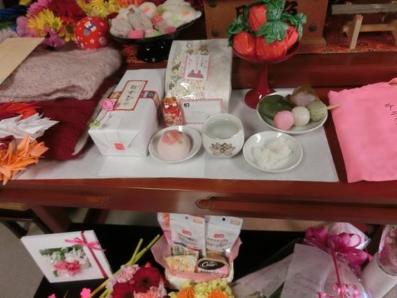 心のこもった、ぬくぬくマフラーやたくさんの供花、千羽鶴や美味しいものを供えていただきありがとうございます。