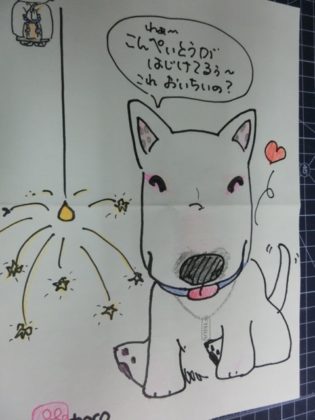 テラ 嬉しい 2017.3.15 十三日は二度目の「月命日」でした 広島のチョコちゃんママさんが、とても可愛らしい絵とお手紙を書いてくれまちた。 ありがと〜♪ うれちぃです!! これを読んだ飼い主が、竹華灯籠まつりへご協賛いただいたので、上手く彫れるか分からないけれどチャレンジしたそうな顔ちてた。 興子さんママのところも、昨日今日と寒かったじゃないかって心配ちてまちた。 春彼岸ももう直ぐ「おはぎ」が楽ちみ♪ 花粉の季節 水と火と光 関連記事 夏バージョン 待ちくたびれ できた!! コメント ( 2 ) トラックバックは利用できません。 興子 2017年 3月 15日 返信 引用 テラちゃん( ゜▽゜)/コンバンハ 可愛い絵を送って頂きうれちゅいなぁ~ 良かったね テラちゃんの方寒さはどうでちゅか? 此方は寒いでちゅよ~ お彼岸のおはぎ楽しみでちゅね この前送って頂いた袈裟縫いに苦労してるの テラちゃん応援ちてね・・・ また住職さんの本購入、頭がさび付いてきちゃって何度も読み返し、以前の本3冊も 読み返し…欲張ってる興子でちゅー テラちゃんまたね 今日もお陰様で wakei 2017年 3月 15日 返信 引用 興子さん そちらはまだまだ寒そうですね。袈裟縫い私も毎回苦労しています、ボチボチゆっくり腰を据え自分と向き合いながら、無理せず進めてくださいね。継続は力なり!!興子ママしゃんも頑張っちてね byテラ 返信をキャンセルする。 名前 ( 必須 ) E-MAIL ( 必須 ) - 公開されません - URL Δemail confirm* post date* 日本語が含まれない投稿は無視されますのでご注意ください。(スパム対策)